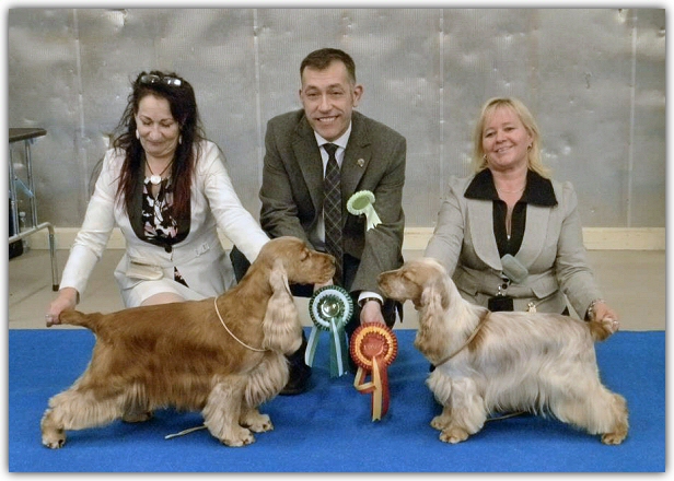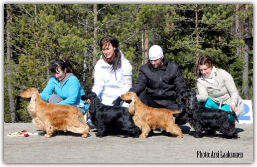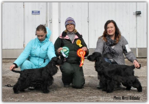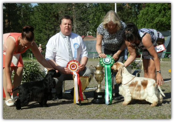 1-2.6 GRANDSLAM for our dogs! Kellokoski biggest cockershow during the year, 149 entries, judges was David Todd and Sue Warrington GB. Best imported dog, Best particolour, Best male and BOS: WESTRIDGE TOUCH OF SEDUCTION Best owned by FIN, Best bred in FIN, Best black, Best less 2 years, BOB junior, Best bitch, BOB: NORTHWORTH EXACT SO ELEGANT, co-owner Elina Kosunen And also Northworth Absurd Variety has been in Minsk gaining her last CACIB, and became, CH, and C.I.E CH HUGE congrats Marita Ojanen!!! |
